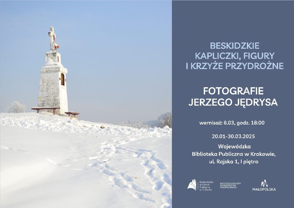 Zapraszamy wszystkich na wystawę i na wernisaż wystawy fotografii Jerzego Jędrysa pt. “Beskidzkie kapliczki, figury i krzyże przydrożne”, który odbędzie się6.marca 2025 o godz. 18:00 na I. piętrze w  gmachu  Wojewódzkiej Biblioteki Publicznej   w Krakowie, ul. Rajska 1